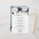 Dusty Blue Rosa Blommigt Bröllop Menu
