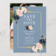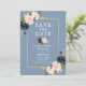 Dusty Blue Rosa Blommigt Guld Photo Save Date Spara Datumet