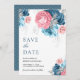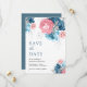 Dusty Blue Rosa Blommigt Ro Bröllop Spara Datumet