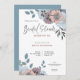 Dusty Blue Rosa Blommigt Script Möhippa Tea Inbjudningar