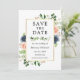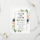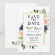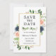 Modern Watercolor Eucalyptus Greenery Dusty Blue Rosa Blommigt Guld Ram Spara Förlovning annons Card