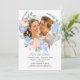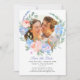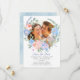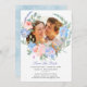 Chicens vattenfärgsdesign innehåller ditt pars foto i en andedräkt av söt blommigt. rosa och pastel blåa blommor ge är en modern och trendig vibe. Spara datum, datum för bröllop-paret namn och bröllop. Mer information kan placeras på baksidan. Det här Spara vykortet för datum ingår i Joyeux-samlingen. Den innehåller de DIY-mallar som du behöver för att skapa en bröllop-papperssvit.