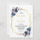 Rustic Wood Navy Blue Rosa Geometric Wedding Invation Mörk navy blue blommigt geometric bröllopsinbjudning med en elegant buquet av marinblått, royal blått, vitt och ro, anpassar inbjudan med din text. De här bröllopsinbjudningarna ingår i en samling som innehåller en rad matchande bröllop-skrivpapper och andra bröllop-artiklar.