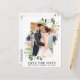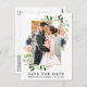 Modern Watercolor Eucalyptus Greenery Dusty Blue Rosor Rosa ros Ram sparar datum för meddelande om Förlovning av foto - vykort för Guld Ram