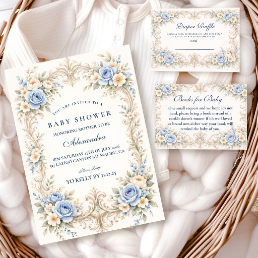 Dusty Blue Rose Baroque Baby ShowerDesignad av Andreea Eremia