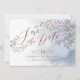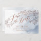 Elegantens moderna kalligrafi sparar datumkortet med blommigtens utformning i kopparbrunt färg på dammig blå vattenfärgsbakgrund, underbar för det moderna ryska bröllop, vår bröllop eller vinterbröllopet. Se alla matchande delar i samlingen nedan.