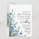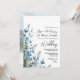 Rustic boho-Chicen vimlar i den vackra inbjudan till bröllopsblommor. Konstruktionen skryter med dammiga blå blommar och grönt med elegant skript. Högerna marginaljusterade text flyter sömlöst med blommorna på den lämnat och skapar en känsla som är modern och tidlös i gången. Baksidan innehåller ditt foto tillsammans med en QR-kod för anpassadet som ger dina gäster information och OSA på bröllop webbplats. Snyggt och elegant, men ändå avslappnad och ner på jorden, är detta inbjudan det perfekt sättet att be dina vänner och din familj att i din glädje på din speciella dag.