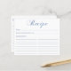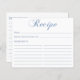 Detta dammiga blå eleganta bröllopsdusch-receptkort i typsnitt är perfekt för vilken dusch som helst. Det har massor av rader för ingredienser och baksidan är full av rader för instruktioner. Bifoga ett eller två receptkort med varje dusch-inbjudan och be gästerna dela med sig av sina favorit-recept med bruden. Du kommer bli förvånad över hur varierande recepten kommer vara och hur tacksam bruden kommer vara för att ha en samling beprövade recept att laga till sin älskade brudgum.