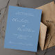 Dusty blue bakgrund. Anpassa och lägg till namn och detaljer. Vit text. Baksida: dammig blå bakgrund.