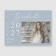 Ja! Er skola i mitten, gymnasiet, högskolan/universiteten, teknikskolan eller student i student gjorde det och håller på att utexaminera! Fira en av deras livs dyrbara stunder och skicka ut det här magnetkortet i studenten. Magnet har ett enkelt, elegant modernt, minimalistiskt stil med vackra kalligrafiskript på en dammig blå bakgrund och student bild. Anpassa och ersätt bara text och foton i anpassningsrutan. Observera: Det går inte att redigera, ta bort eller flyttat ordalydelsen "student" i det elegant kalligrafiskriptet tillsammans med linjer och andra grafiska bilder och inslag. De är fixerade.