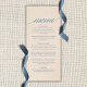 Accent your wedding table setting or special event with this modern serif menu, featuring elegant script and classic serif fonts in a soft dusty blue hue. Printed on a warm kraft-inspired background, this design perfectly blends timeless sophistication with a modern touch. For an extra personal touch, add a custom thank you note to guests on the back!