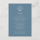 Specifikationskort för Dusty Blue Seashell Beach Destination Wedding-inbjudan. Alla texterna är i förväg ordnade så att du enkelt och snabbt kan anpassa dig med dina egna detaljer.
