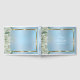 Utformningen har en bukett med vacker vit blommigt och en dammig blå skuggande bakgrund. Det kan vara personlig med din egen information.