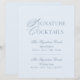 Ge din bröllopsbar en förfinad och personlig touch med detta eleganta skylt för signaturcocktails i dammig blå färg. Designad i en tidlös fin stil, har denna pjäs delikat script-typografi i kombination med en klassisk serif-teckensnitt, vilket skapar en sofistikerad och romantisk estetik.