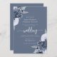 Dusty Blue Silver Blommigt QR-kod Bröllop Inbjudningar