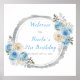Dusty Blue Silver Elegant Flowers Födelsedagsfest Poster