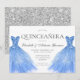 Dusty Blue Silver Glitter Gown Twin Quinceanera Inbjudningar