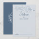 Detta minimalistiska blommigt boho bröllop-rådgivningskort är perfekt för vilken säsong som helst i bröllop och kan användas för alla evenemang. Utformningen har moderna, minimalistiska, ömtåliga blommor mot en lätt dammig blå bakgrund. Baksidan har ett huvudmotiv för ditt personligt bröllp-monogram, som är inramat av känsliga, naturliga illustrationer (löstagbara). Dessa rådgivningskort kan användas som ett alternativ till en gästbok för bröllopsmottagning, möhippa, babydusch eller studentfest. Anpassa kortet med namn på bruden och brudgummen, mor till att bli eller student.