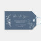 Lämna ett tacksamhetsbudskap och en känsla av sofistikering med dessa märkre för förmånliga gåvor. Framsidan har ett känsligt löv tillsammans med ordalydelsen "Tack" och ett kort-budskap för att uttrycka sin tacksamhet mot en levande Dusty Blue-bakgrund. Anpassa etiketterna med namn och datum. Ändra ordalydelsen till kostym hur som helst: möhippa, repetitionsmiddag, babydusch med mera!