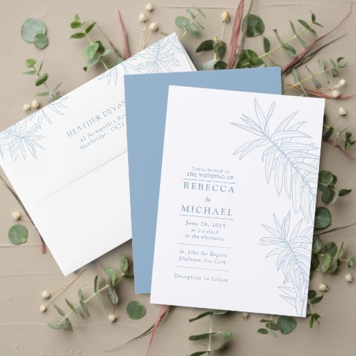 Dusty Blue Simple Botanical Leaves Wedding Designad av Amour Paperie