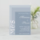 Den moderna chicen manar till bröllopsinbjudan för brider som håller på att hålla sina ceremonier i dammig blå. Alla är inställda på modernt vitt teckensnitt med initialer på sidan.