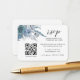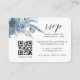 Modern elegant, dammigt blått QR-kodkort för bröllop OSA. OSA kort med handmålade vattenfärgblommor och grön färg i skuggor av pastellblått, skiffer och dammigt blått, modernt kalligrafi och QR-kod. Du kan anpassa ordalydelsen, teckensnittet stil, färg och storlekt framför och bakom detta botaniska OSA kort. Matchande objekt är tillgängliga.
