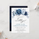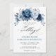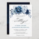 Dusty Blue Slate Navy Blommigt Botanical Bröllop Inbjudningar
