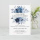 Dusty Blue Slate Navy Blommigt Botanical Bröllop Inbjudningar