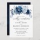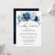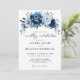 Dusty Blue Slate Navy Blommigt Botanical Bröllop Inbjudningar