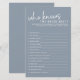 Skruva upp möhippan med den "must-have Dusty Blue" som känner till "Bride Best Möhippa Game"! Detta minimalistiska spel ger möhippan ett nyktert fläkt med dess rena, contemporary design. Med omtänksamma motiv för att avslöja brudens personlighet och preferenser uppmuntrar detta spel till skratt och vänskaplig konkurrens mellan gästerna. Det kommer att glädja bruden att upptäcka vem som betalar närmast uppmärksamhet på de små detaljer som gör henne unik.