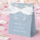 En elegant bröllop-förmånslåda med söt av ljus och handdragen blommigt på dammig blå bakgrund. Ett perfekt sätt att tacka gästerna! Designad av Thisisnotme©