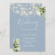 Dusty Blue String Ljus Blommigt QR-kod Bröllop Inbjudningar