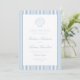 Announce your wedding date with this dusty blue stripe seashell wedding save the date, featuring soft blue stripes with a hand-drawn seashell illustration at the top. The couple’s names are displayed in elegant calligraphy script, with the wedding date and location arranged below in classic serif lettering. This design is a beautiful choice for beach weddings, destination weddings, and seaside ceremonies, and pairs especially well with soft, romantic wedding color palettes. The back provides space to add your wedding website, engagement photo, or additional wedding details.