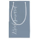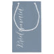 Presentera era dina gåvor från bröllop med den här lilla presentväskan som passar din bröllopsfest färg-plan från ett dammigt blått färg, tillsammans med ett vitt, stiliserat skript som lyder "Bridesmaid".