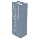 Ge en flaska i vin till din bröllop-groomsman med den här presentpåsen från vin som är ett trendig, dammigt blått färg tillsammans med ett vitt, stiliserat skript som lyder "Groomsman". Finns i många populära program i bröllop färg.