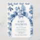 Dusty Blue Toile De Jouy Fransk Baby Shower Inbjudningar