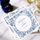 This design features classic blue toile botanical illustrations surrounding a refined circular frame with the couple’s names and wedding date. The timeless blue and white palette evokes vintage European charm, making it perfect for romantic, garden, coastal, and classic weddings.