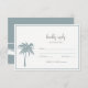 Svarskort från Dusty Blue Tropical Handflatan Destination Wedding med Ocean Vinkarare på baksidan. Beach-inbjudningskort för elegant Beach
