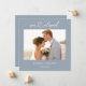 Meddelande om vigsel utan bröllopsfest | Dammtor Blue Enkel Elegant Handskriven "vi rymde" Foto Vigselkort för Minimalister | Kalligrafi Elopement Bröllopskort |