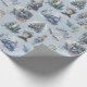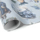 Dusty Blue Antique Victorian Ephemera Julaftonsvällning Papper - Den här presenten som omsluter pappra har en delikat sömlös mönster-design med mycket blek pastellblått, elfenben, kräm, guld och vit korvskinn Viktorian Era ephemera-julhelans temaillustrationer från gårdagens, på en dammig ljusblå bakgrund från himmel. Grafiska bilder är Jultomten, tåg, en nötköttsbricka, silver klockor, Julklapp, en vagn, pelarljus, ett dekorerat julafton träd, ett barn, en fågel, säsong löv, fjällgarter och så vidare.