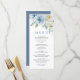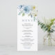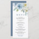 Dusty Blue & Vit ros Blommigt Bröllop Menu Meny