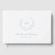 Elegant bröllop gäst bok med en ren och tidlös design med ditt monogram inuti en vapensköld för krans tillsammans med ditt datum för namn och bröllop.