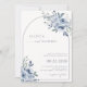 Elegant är en dammig, blå bröllopsinbjudan med vattenfärgsblå blommigtar och löv bladdesign.
