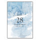 Elegant vattenfärgsfärgkort för bordsnummer i bröllop med blommigt som innehåller torv och vatten i dammiga blått, sage och grått.