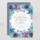 Bröllopbjudanden med mörk vattenfärgblommor i blått, teal och lila.