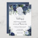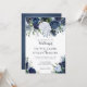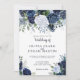 En rustik vattenfärgsdesign av stort ro i vackra, blå, vita och marinerade nyanser på rent vit bakgrund. Kortet återgår till en rik marin färg med en liten blommigt arrangemang i mitten. Du kan lägga till dina personliga uppgifter genom att gå till anpassningsmenyn. Detta är en del av en elegant bröllop-svit som kan vara helt personlig.