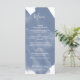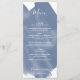Den här designen har en dammig blå vattenfärg i eleganten. Den vita typografin kontrasterar mot den dammiga, blå vattenfärgsmålningen som skapar en ren elegant. Modern design med enkelhet och elegans. Den här utformningen passar perfekt för alla bröllop-teman. Menykortsdesign för bröllop under hela säsongen för perfekten. Det finns också möjlighet att matcha bröllopsinbjudningar och andra artiklar i kontorsartiklar.