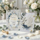 Invite your guests to a celebration of timeless romance with this breathtaking "Swan Lake" inspired design. Ideally suited for formal winter weddings or elegant evening receptions, this artwork captures the grace of a fairytale union. The composition blends soft serenity with regal sophistication, setting a magical tone from the moment the envelope is opened.This design features a flat-printed digital illustration that simulates the look of 3D sculpted plaster or bas-relief. Two elegant white swans face each other, their necks curving to form a subtle heart shape, with highly detailed, textured-looking feathers. They rest upon a bed of dusty blue and white watercolor roses mixed with sage green eucalyptus leaves. The background is a soft white marble texture. A geometric gold diamond frame surrounds the text, accented by faux gold foil splatter effects. The typography combines a flowing gold calligraphy script for names with a clean, navy blue serif font for the event details. Please Note: All textures, including the gold foil and embossed swan relief, are high-quality flat digital prints and do not have actual tactile depth.