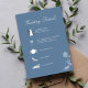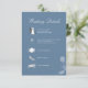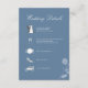 Elegant dusty blue wedding details enclosure card featuring refined calligraphy script and a clean, modern layout. This stylish insert showcases your wedding timeline with minimalist icons for ceremony, reception, dinner, and dancing. The coordinating reverse side includes a scannable QR code for easy RSVP and quick access to your wedding website, making it both beautiful and functional.