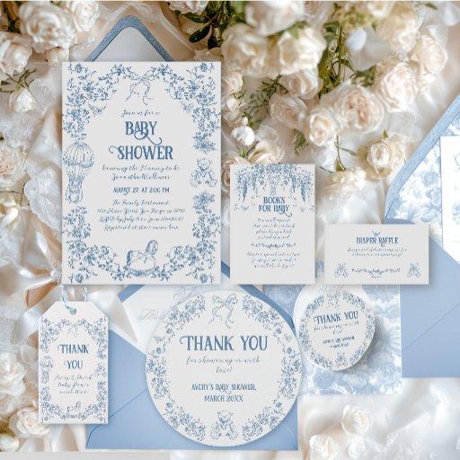 Dusty Blue Whimsical Blommigt Baby Shower Inbjudningar